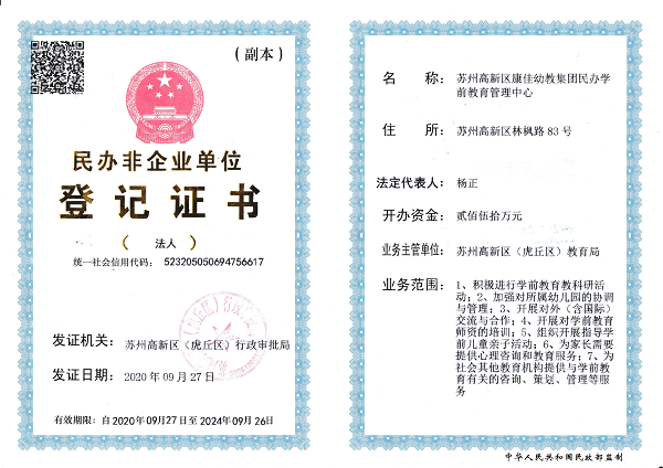 苏州高新区康佳幼教集团民办学前教育管理中心民办非年检合格(2020年度)